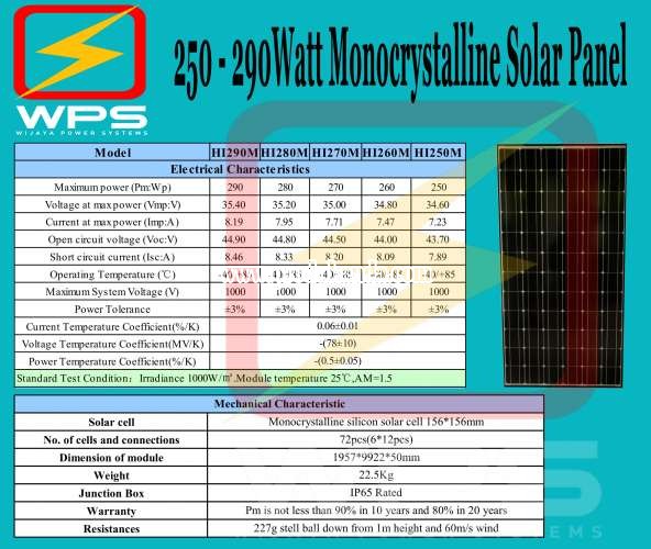 Dapatkan Spesifikasi Harga Solar Panel Monocrystalline 250-290Watt Produk Terbaik dari